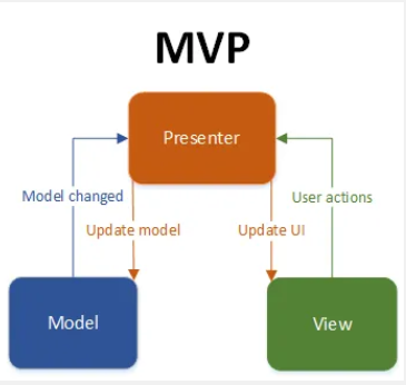 MVP 는 View 와 Model 은 Presenter를 거쳐서 동작하게 된다.