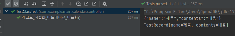 다만 아직까지 record 타입의 객체가 JSON으로 파싱되려면 '@JsonProperty("필드명")' 어노테이션을 추가해 줘야 직렬화가 가능한 것 같다.
