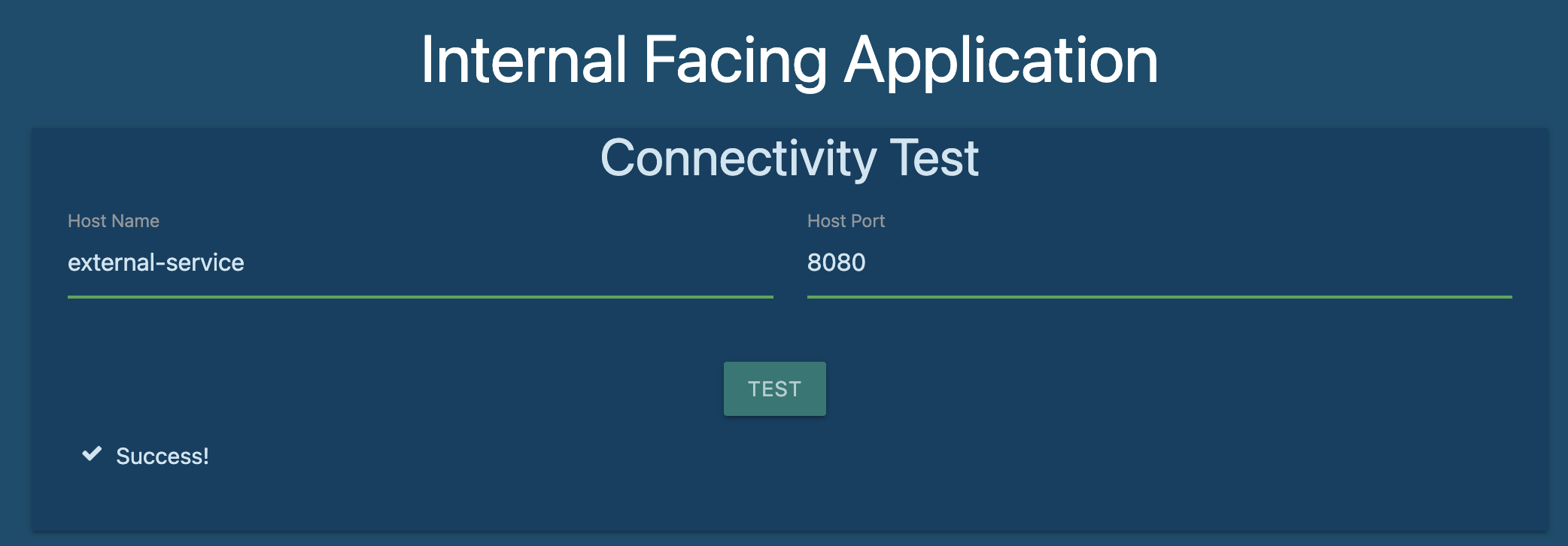 9. Perform a connectivity test using the User Interface of the Internal Application to access the external-service at port 8080.