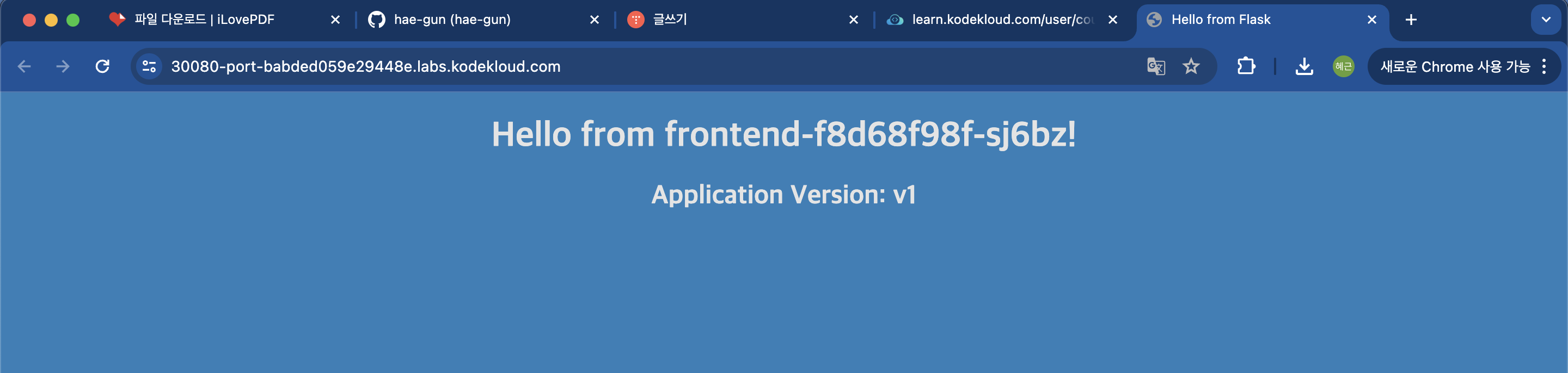 - image: kodekloud/webapp-color:v1 ## 변경 kodekloud/webapp-color:v2